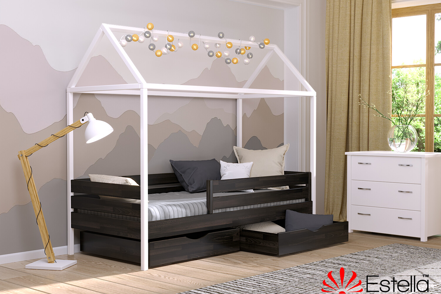• Ліжко Будиночок Аммі (бук) Колір Комбі Венге + Білий