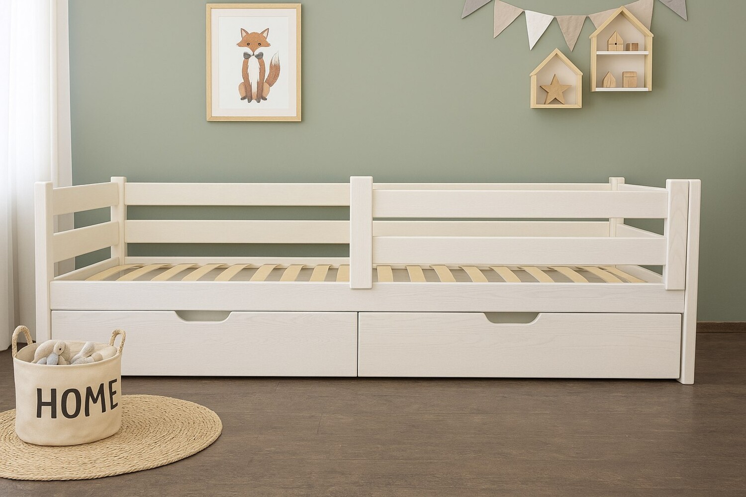 Висувні шухляди: Місткі шухляди на коліщатках надають додатковий простір для зберігання іграшок, постільної білизни або одягу.
