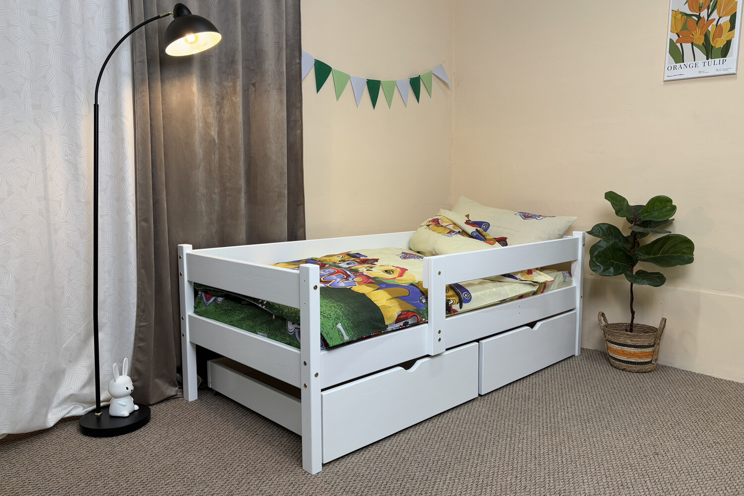 Опції для комфорту і зручності: Можливість замовлення додаткових ящиків під ліжком створює додатковий простір для зберігання іграшок та інших речей, не захаращуючи кімнату. Додатковий бортик безпеки забезпечує спокійний сон, запобігаючи падінню дитини.