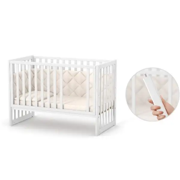 - дно ліжечка виготовлене з ортопедичних ламелей, які забезпечують достатню вентиляцію матраца та постільної білизни;