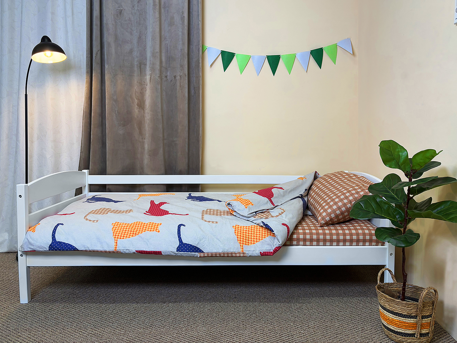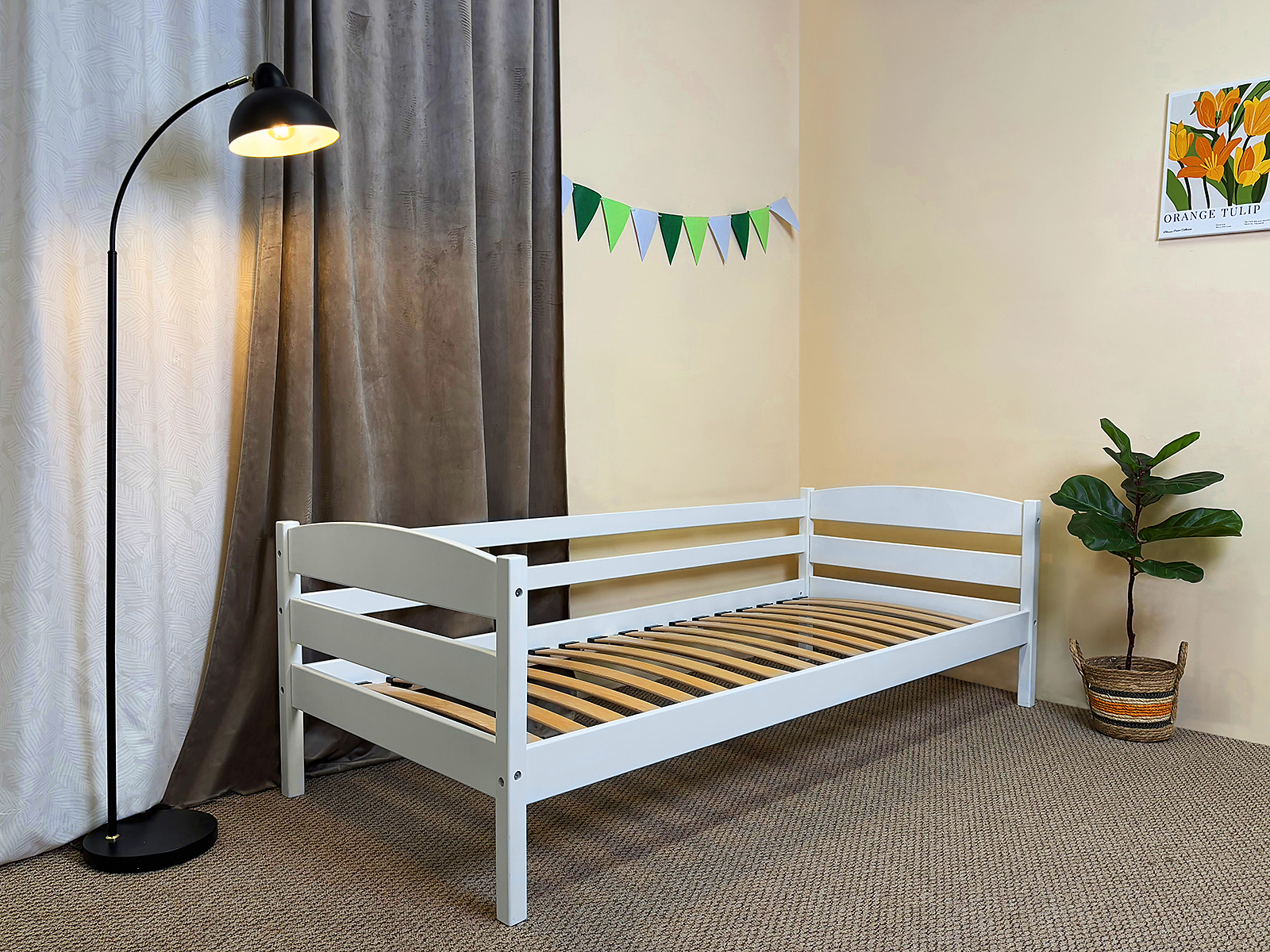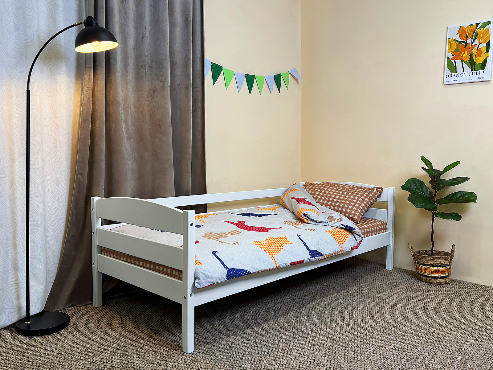 Додаткові опції: Ліжко пропонує додаткові опції, як-от бортик безпеки та шухляда під ліжком для зберігання білизни, іграшок та інших предметів, що робить його зручним і функціональним.