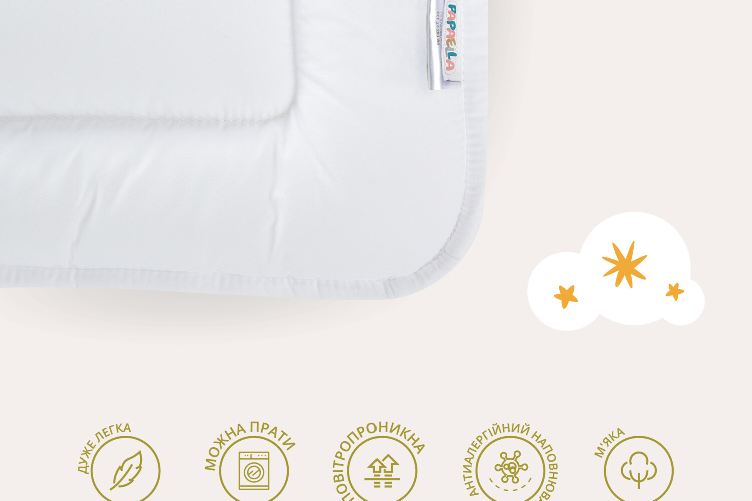 Дитяча подушка PAPAELLA — це ніжність, безпека та якість у кожній деталі, щоб сон вашого малюка був здоровим і комфортним.