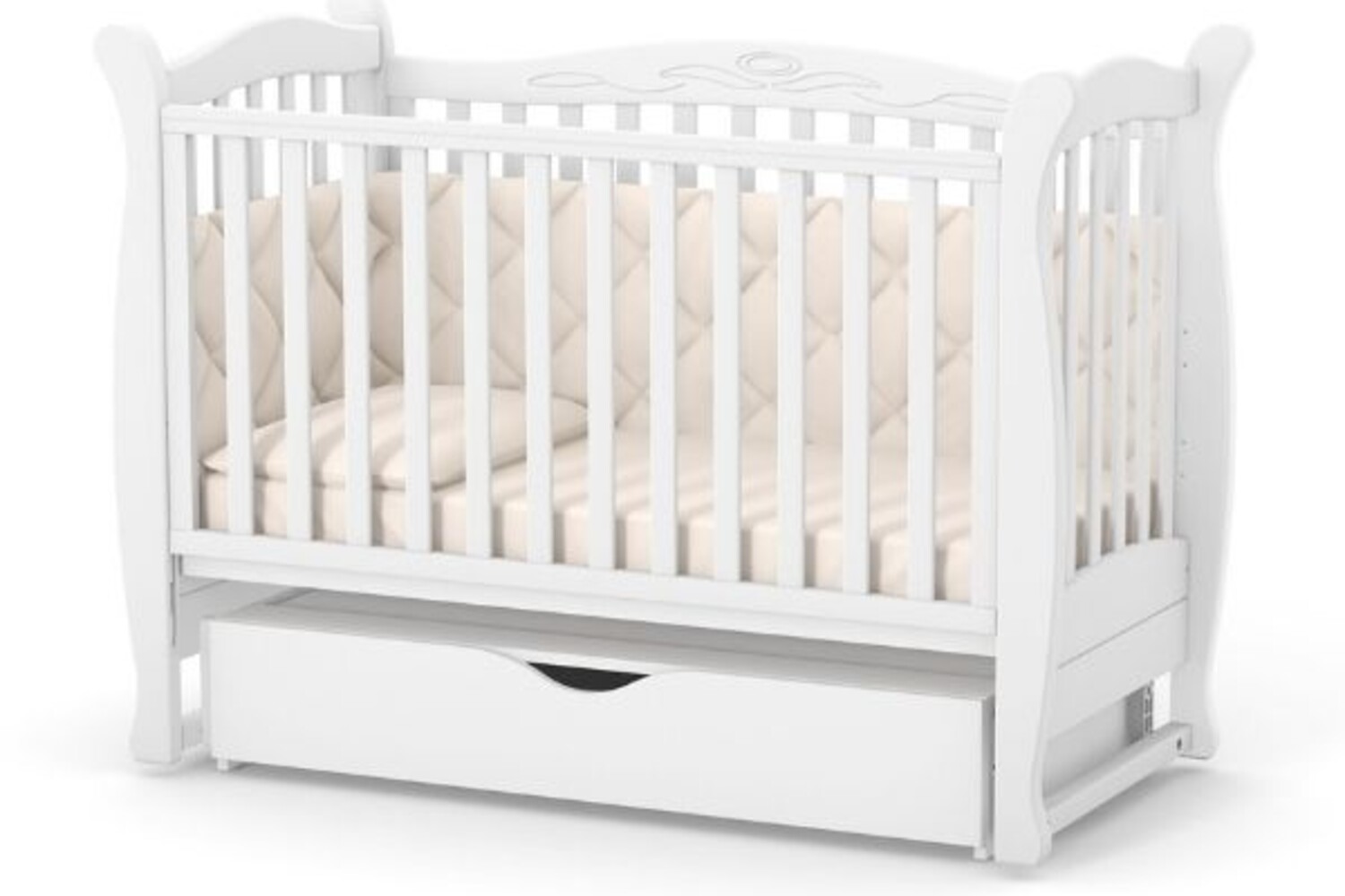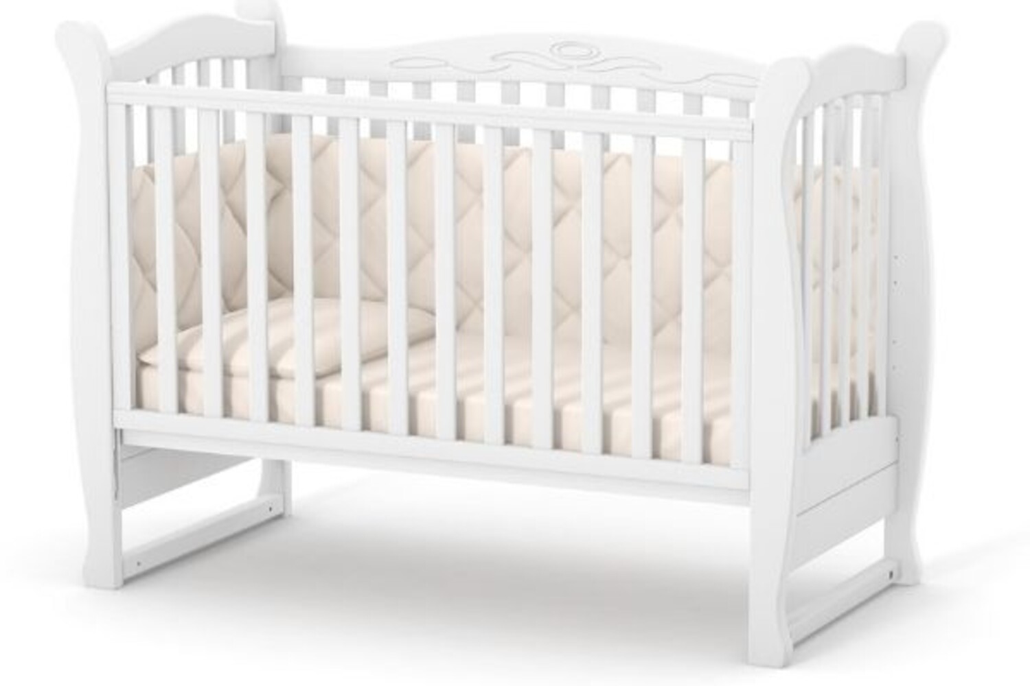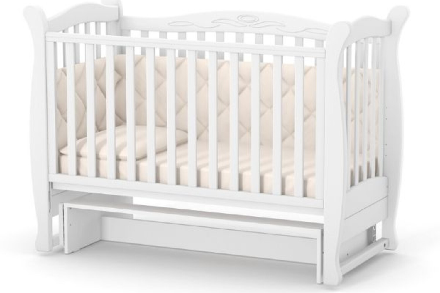 - без системи заколисування, встановлюється на ніжки (систему заколисування – маятник або маятник з ящиком, колеса – можна докупити окремо, маятник та колеса з фіксаторами);