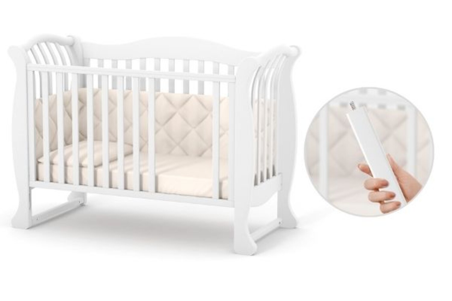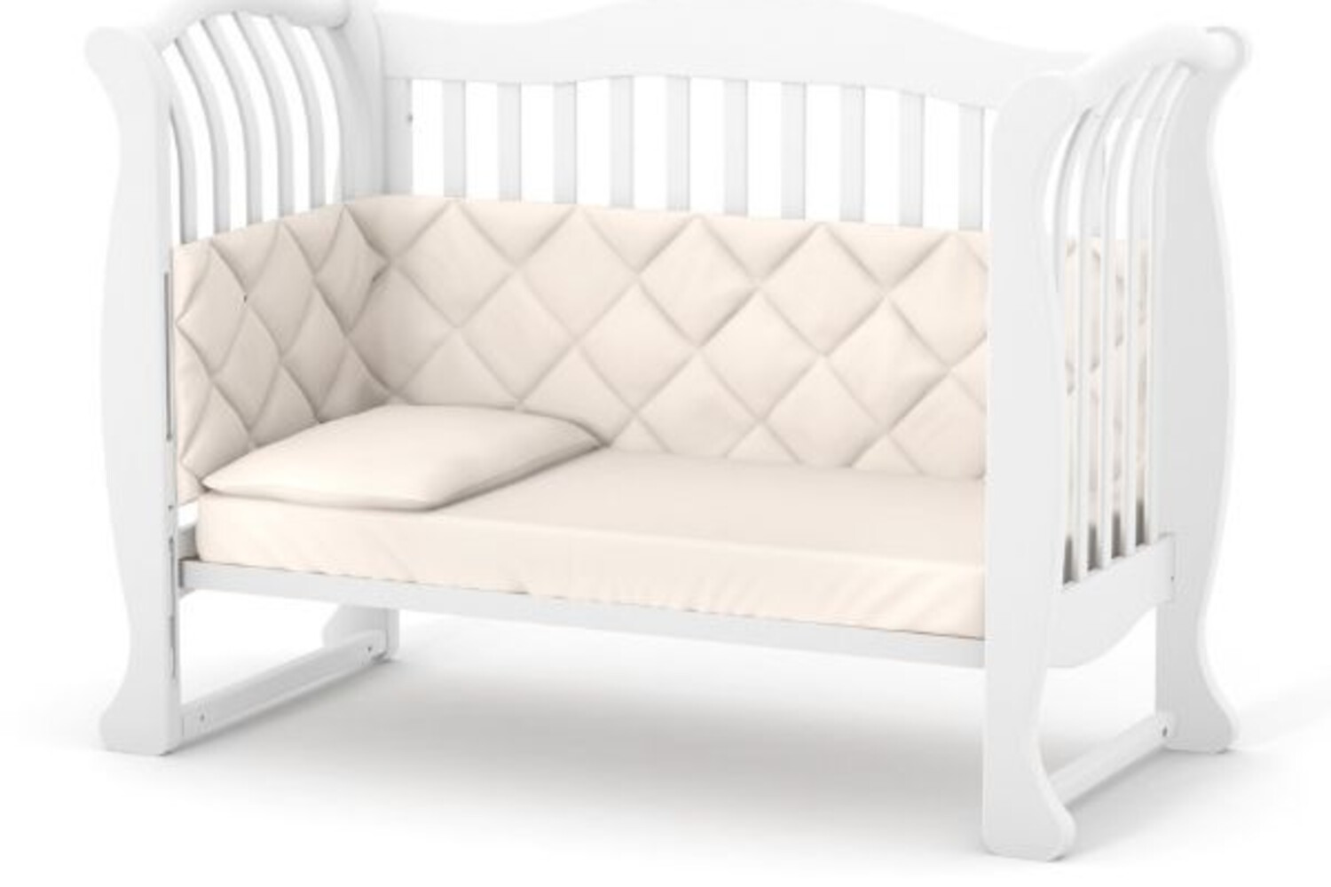- дно ліжечка виготовлене з ортопедичних ламелей, які забезпечують достатню вентиляцію матраца та постільної білизни;