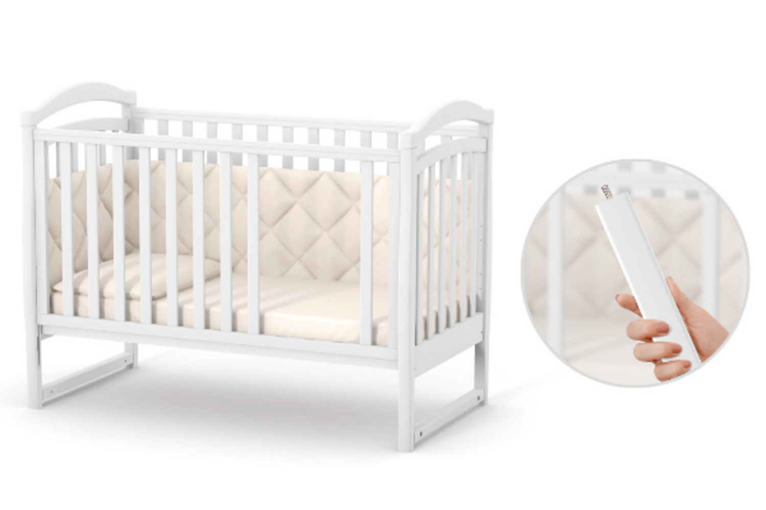 - дно ліжечка виготовлене з ортопедичних ламелей, які забезпечують достатню вентиляцію матраца та постільної білизни;