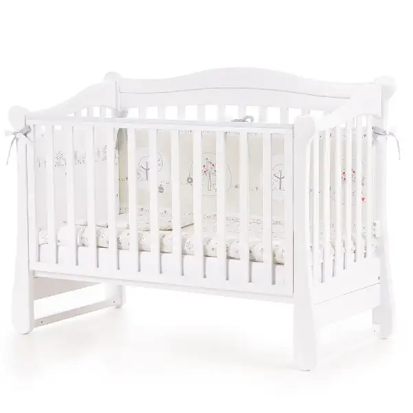 - дно ліжечка виготовлене з ортопедичних ламелей, які забезпечують достатню вентиляцію матраца і постільної білизни; ся повністю) - на італійській системі опускання (полозки "заховані" внизу, фіксація решітки у верхньому та нижньому положенні при її опусканні/підніманні);