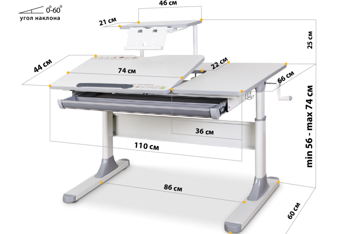 Завдяки великому діапазону зміни кута нахилу парту можна використовувати не тільки для письма та читання, але й для малювання. Спеціальний проміжок на краю рухомої частини зробить цей процес безпечним для дитини.