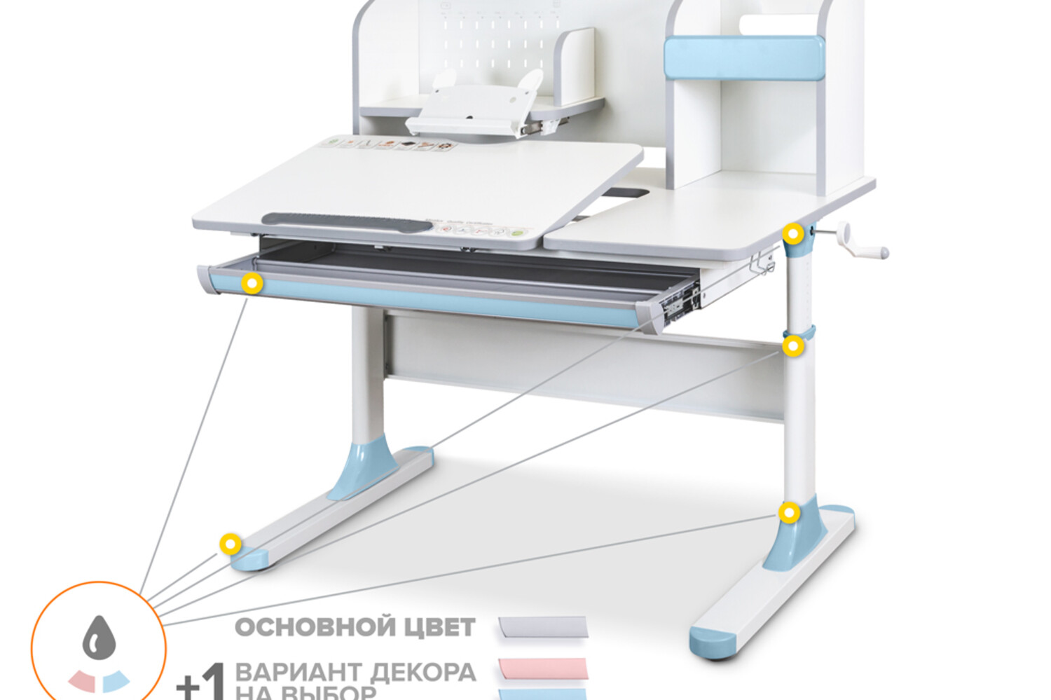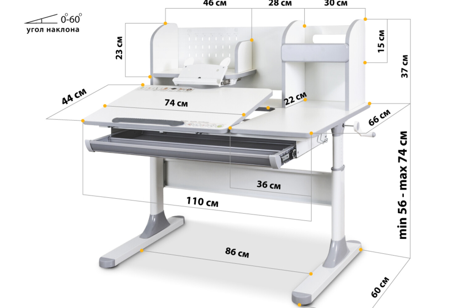 - Нахил стільниці до 60° - ідеально для читання, письма, малювання.