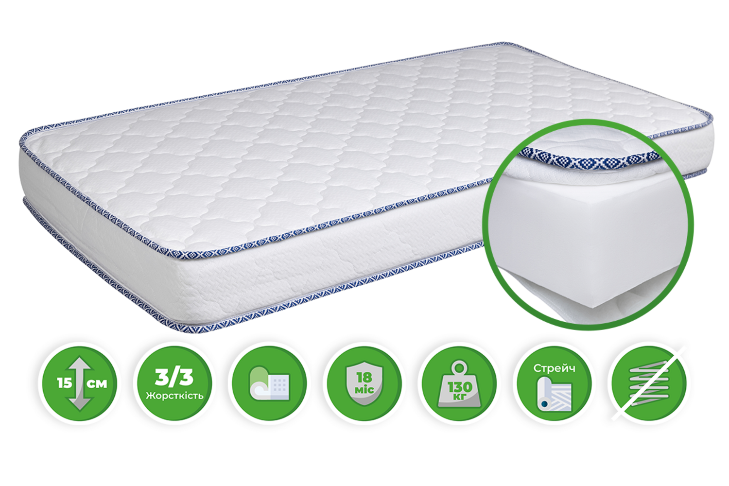 Все компоненты матраса обладают своими индивидуальными качествами, благодаря которым достигаются максимальные ортопедические свойства изделия. Пенополиуретан способен выдерживать длительные нагрузки, при этом не «сбивается», является экологически чистым, нетоксичным и гипоаллергенным материалом и обеспечивает необходимую жесткость для правильного формирования и развития позвоночника ребенка.