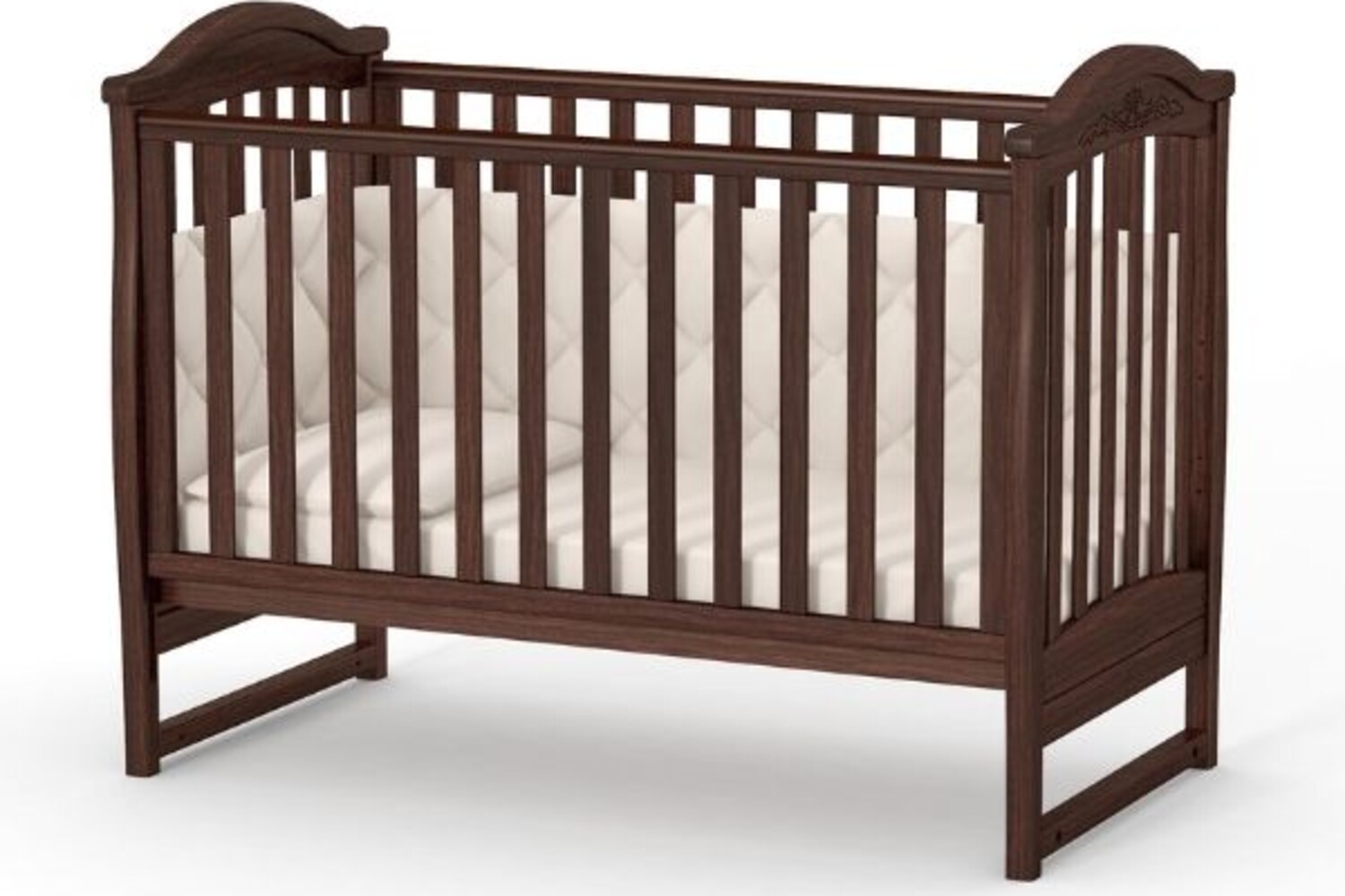** Кроватка устанавливается или на маятник, или на колеса. При одновременной установке с колесами маятниковый механизм не будет работать. Одновременное использование не предусмотрено производством и может привести к сокращению срока службы изделия или поломки его элементов и комплектующих.
