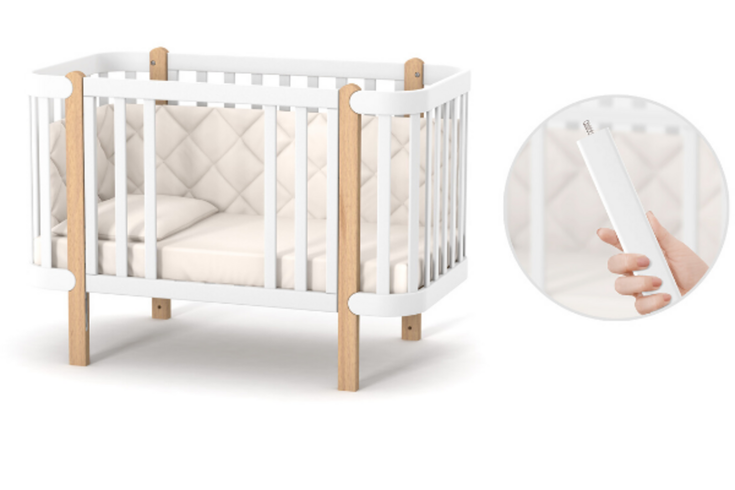 * Съёмные спицы: когда ребенок достаточно подрастет, можно вытянуть 3 центральные спицы, обезопасив своего ребенка от риска падения с высоты ограждения при попытке самостоятельно выбраться из кроватки. Через созданный вытянутыми спицами безопасный проём ребенок сможет самостоятельно покидать и возвращаться в кроватку.