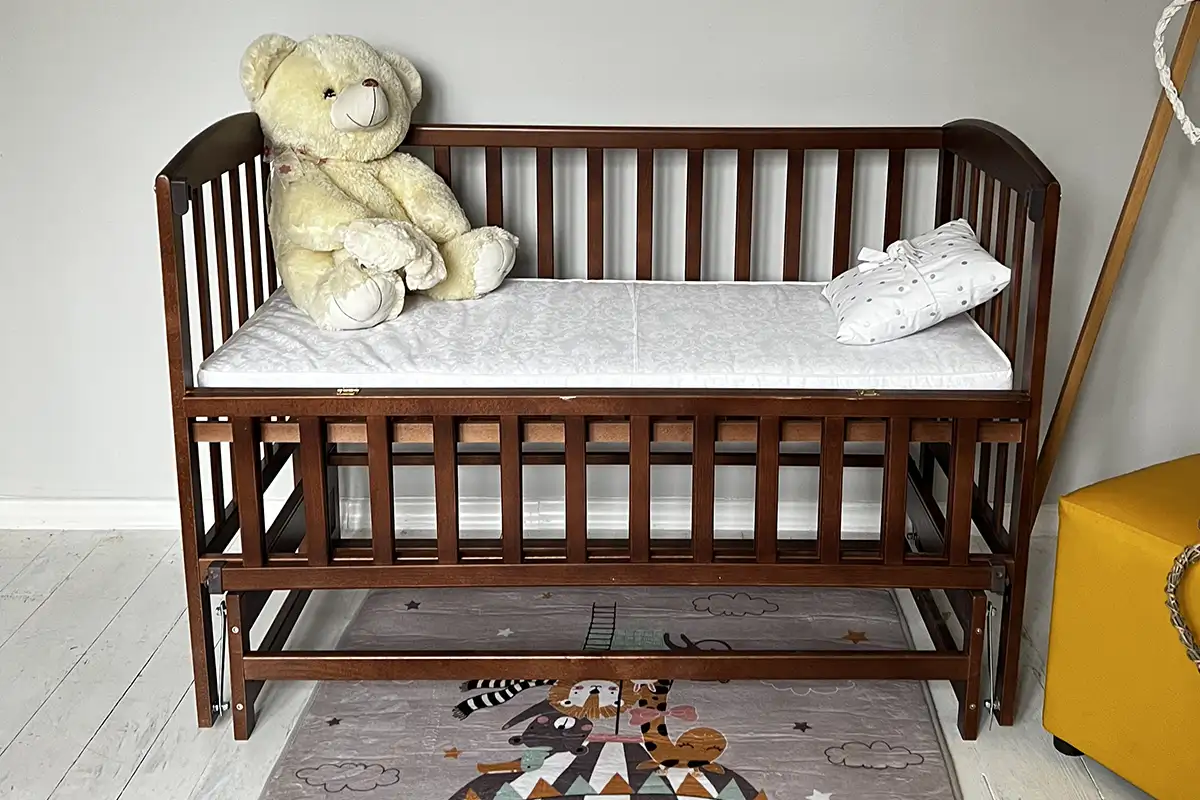 Откидная боковина: Обеспечивает легкий доступ к малышу, облегчая уход за ним.