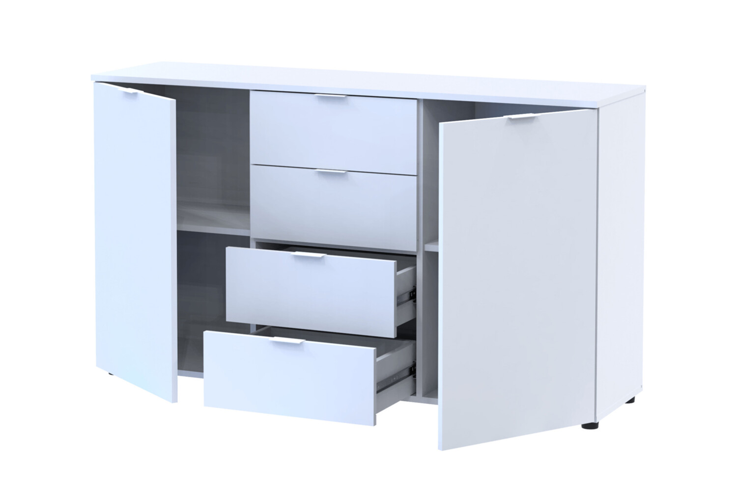 Комод Рон 5 Белый сочетает в себе современный дизайн и функциональность, обеспечивая удобное хранение вещей Вашего ЧАДА.