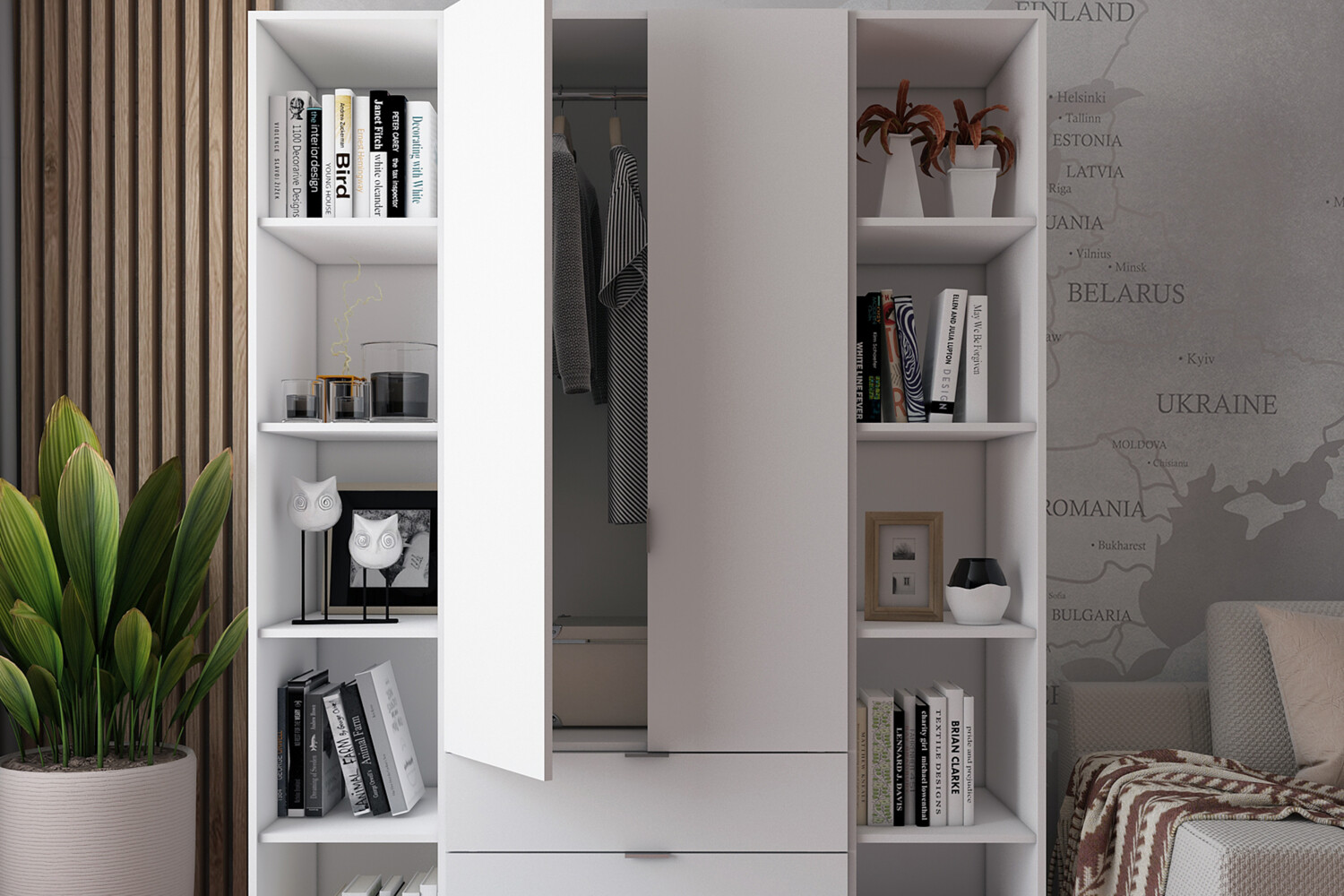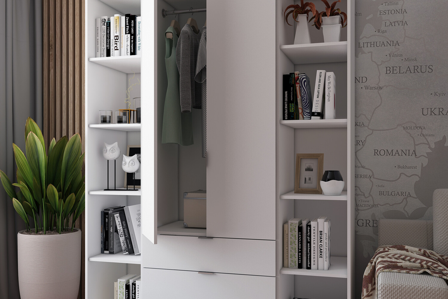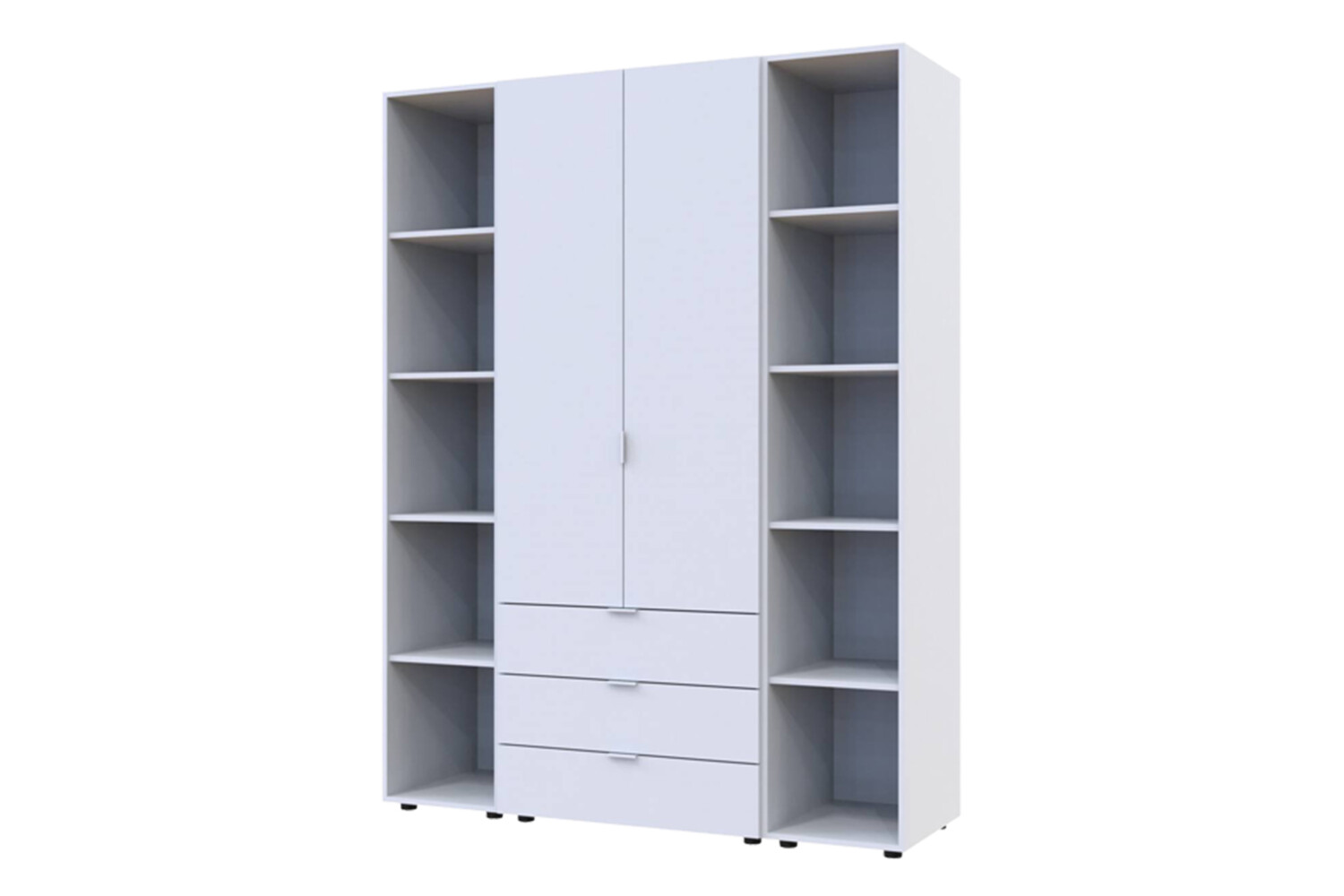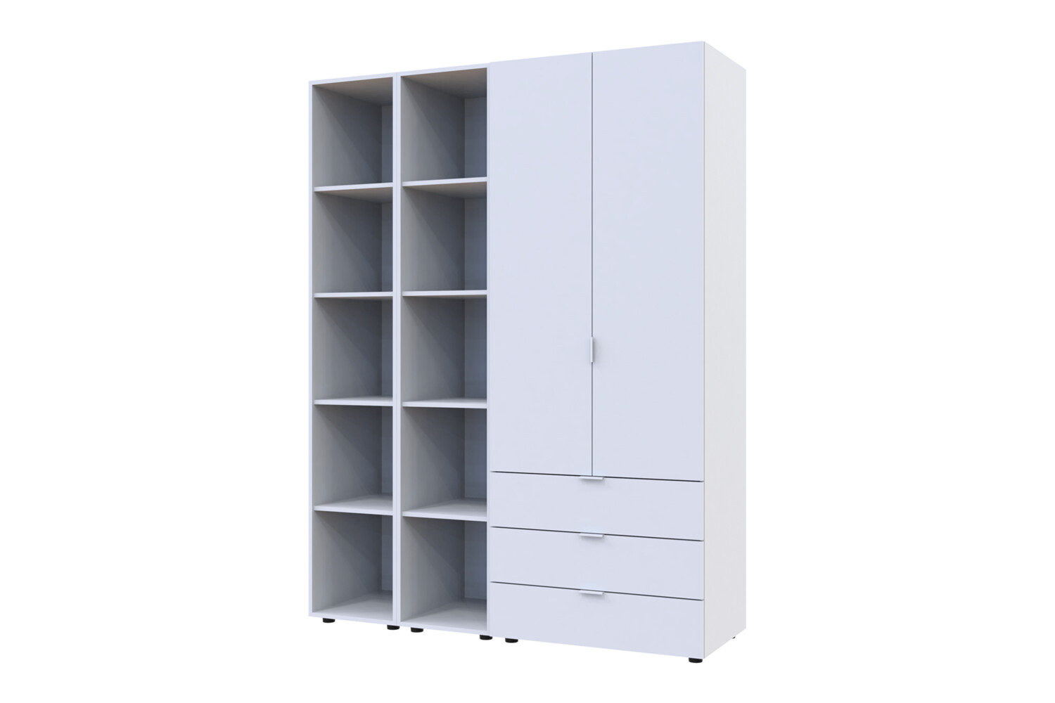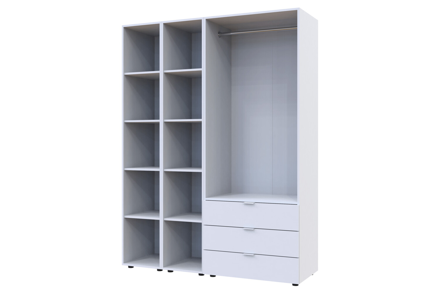 Многофункциональность: В комплект входят 3 выдвижных ящика и 10 полок для белья, что делает его идеальным для хранения разнообразных вещей.