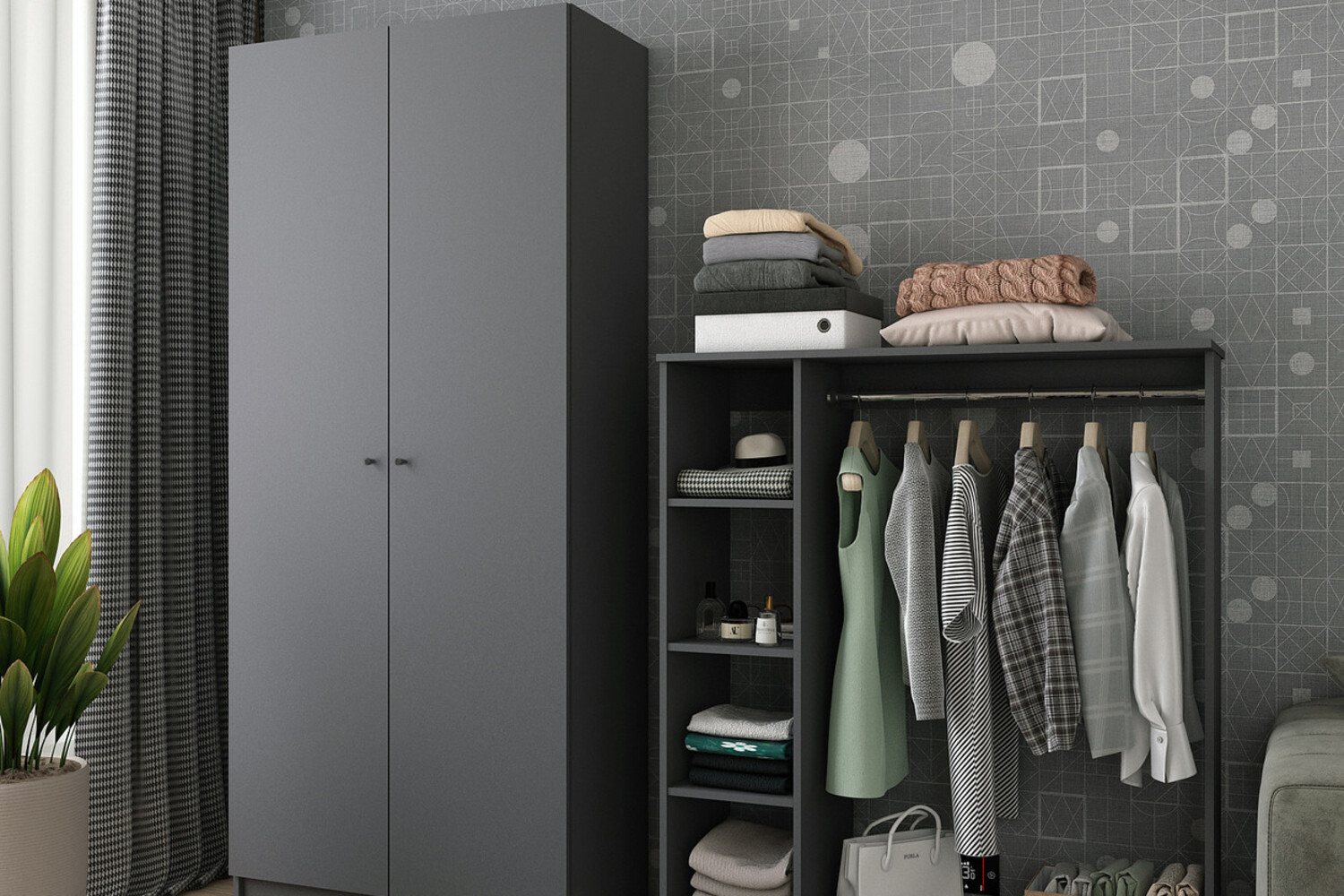 Шкаф для одежды Promo с полками Графит 2 ДСП в детскую - это идеальное решение для тех, кто ценит удобство, функциональность и стильный дизайн.