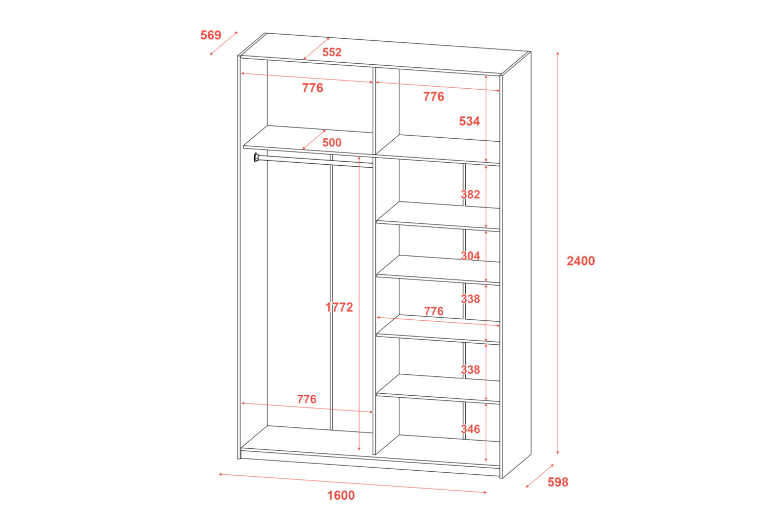 Практичность и функциональность: В шкафе-купе предусмотрено 7 полок для белья и одна штанга для одежды, что позволяет эффективно организовать пространство для хранения различных вещей.