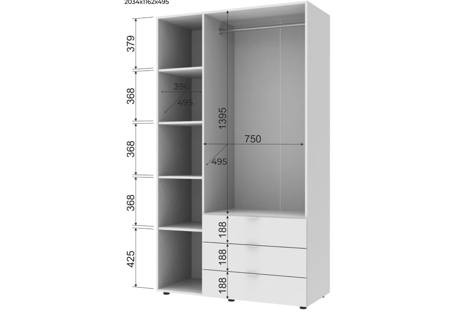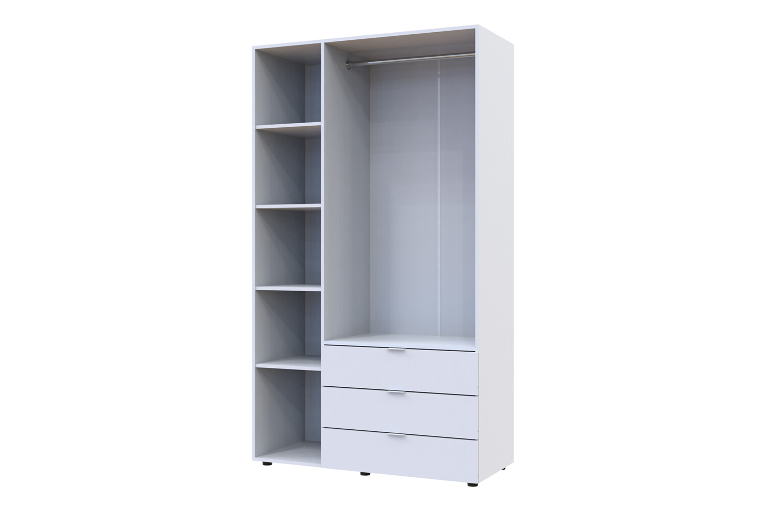 Оптимізація простору: Шафа оснащена трьома висувними шухлядами і гардеробною штангою, що забезпечує зручне розміщення одягу вашої дитини, роблячи зберігання більш організованим.