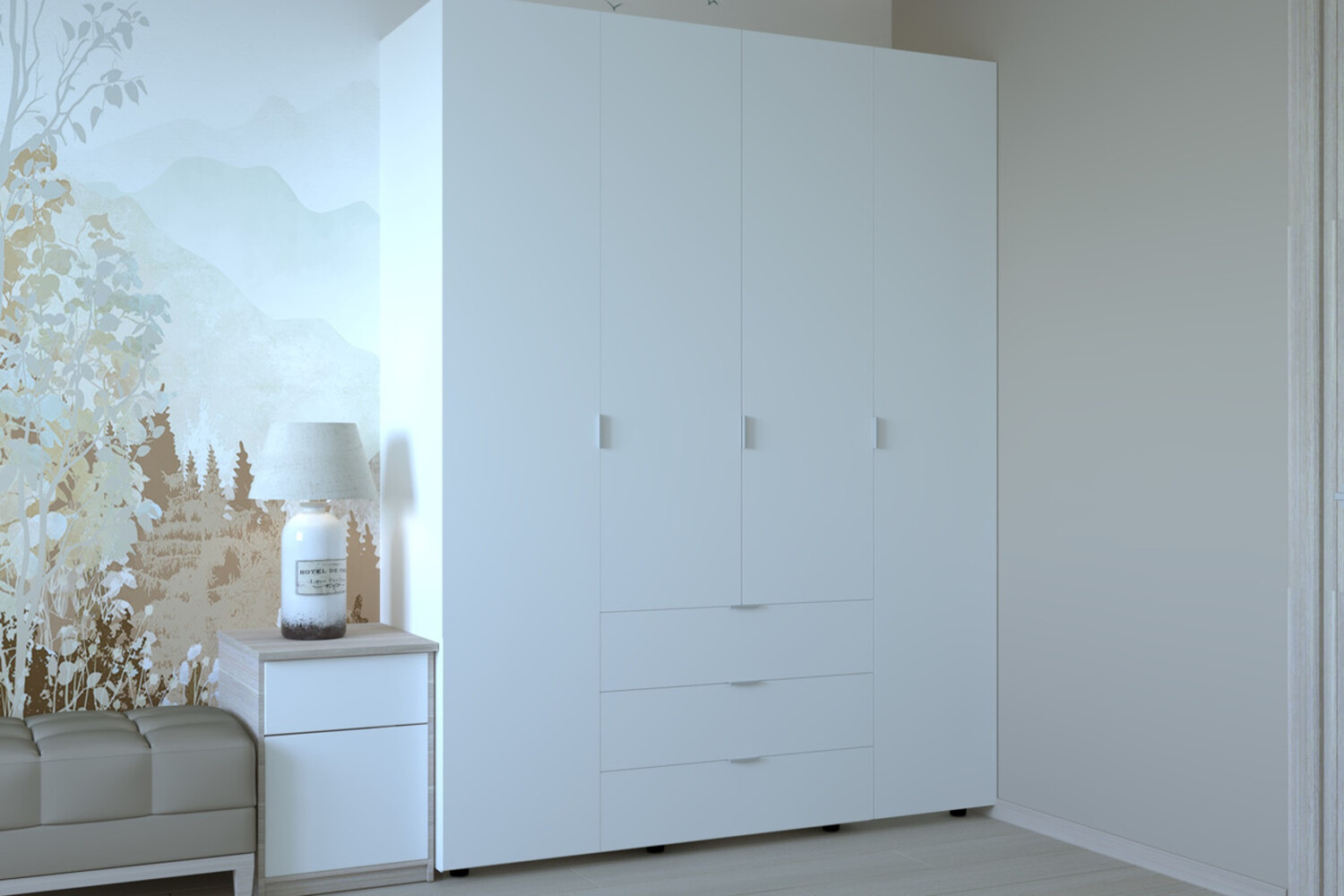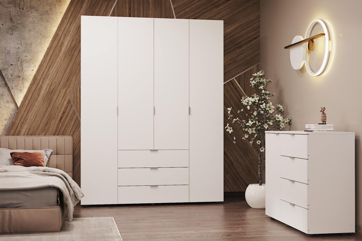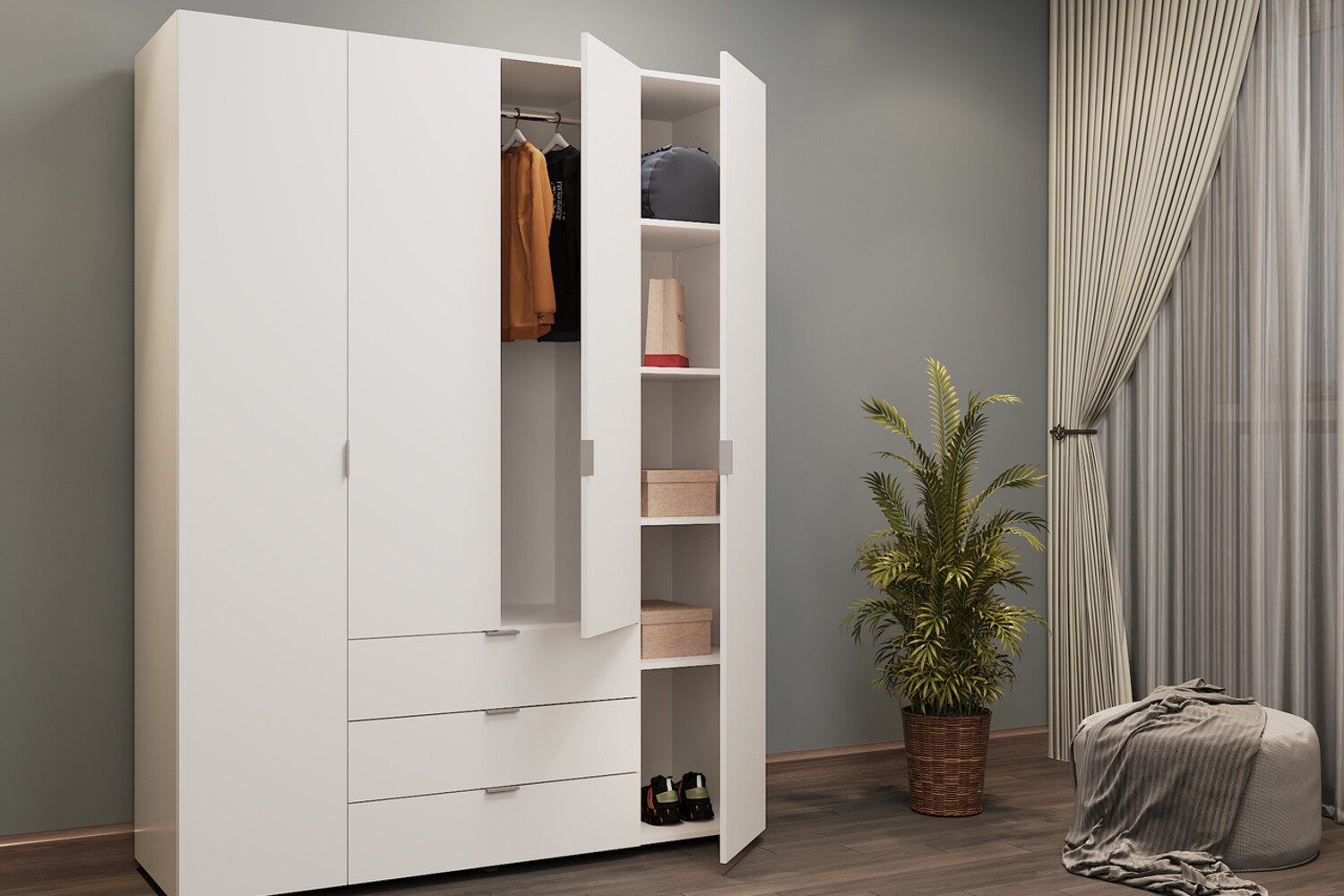 Шафа для одягу Гелар Білий 4 ДСП - це ідеальне поєднання елегантного дизайну, зручності використання та багатофункціональності.