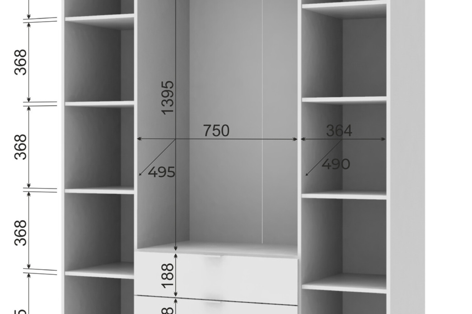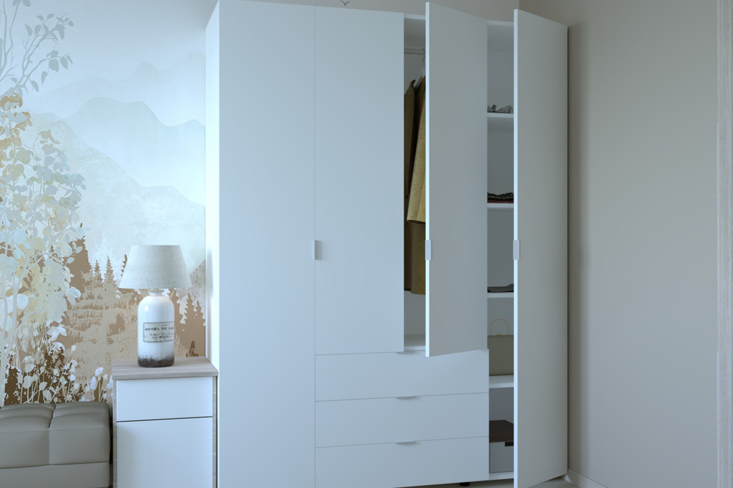 Багатофункціональність: Шафа оснащена 3 висувними шухлядами для зберігання дрібниць і 10 полицями для білизни, що робить її ідеальною для організації простору.