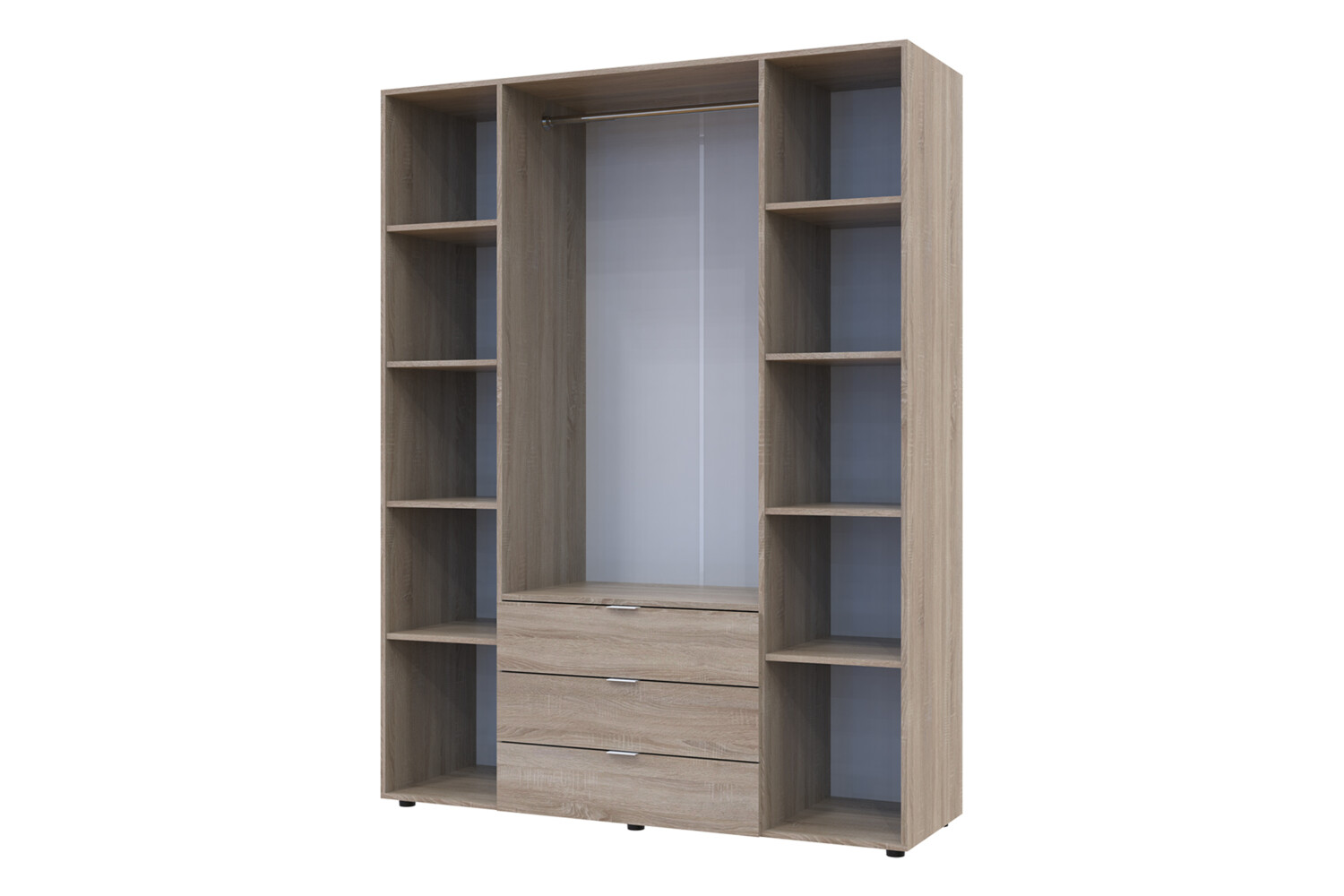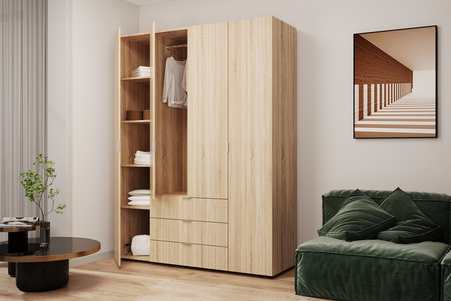 Багатофункціональність: Шафа оснащена 3 висувними шухлядами для зберігання дрібниць і 10 полицями для білизни, що робить її ідеальною для організації простору.