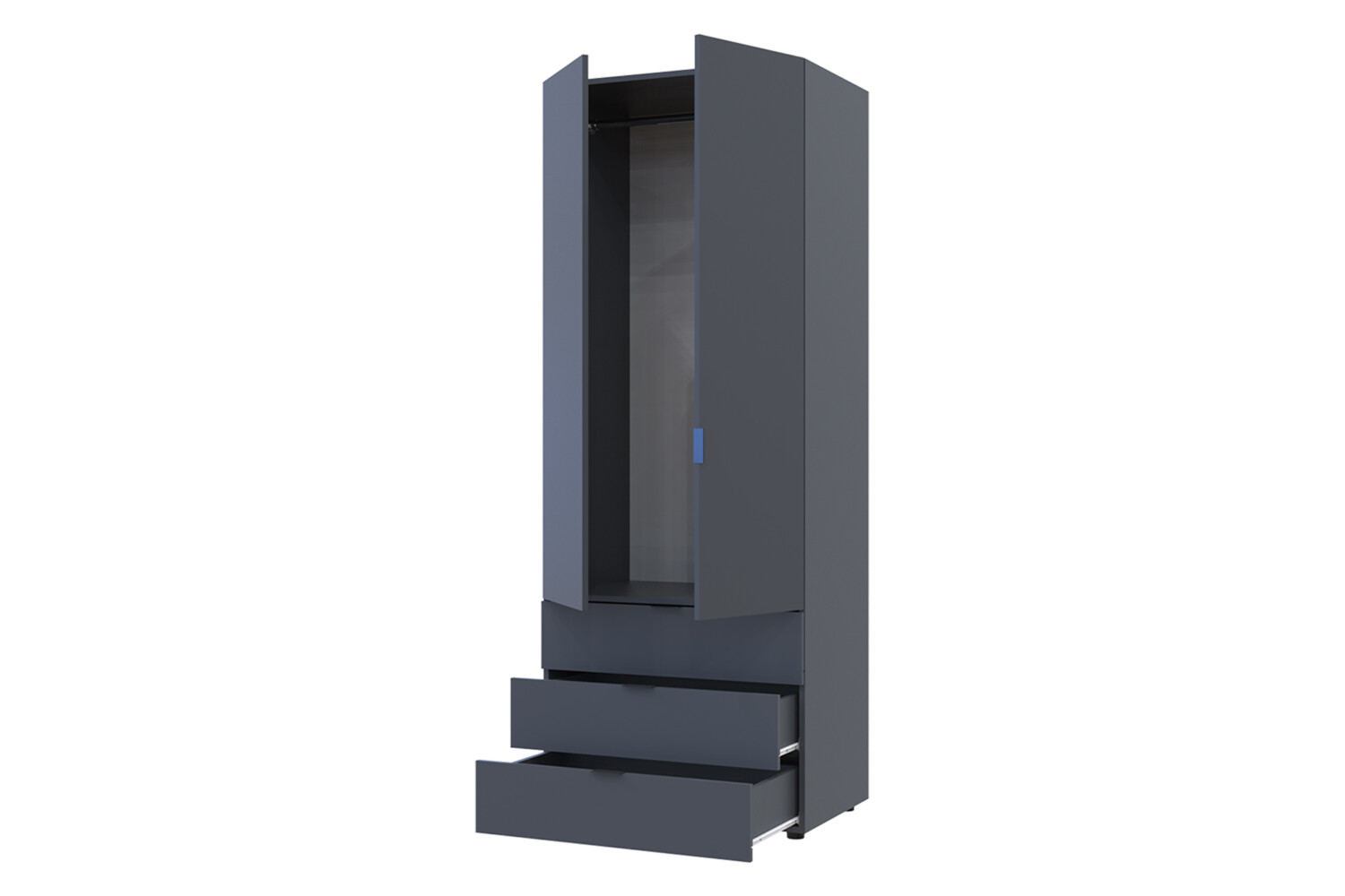 Висувні шухляди: Три висувні шухляди забезпечують зручне зберігання й організацію вашого одягу та аксесуарів.