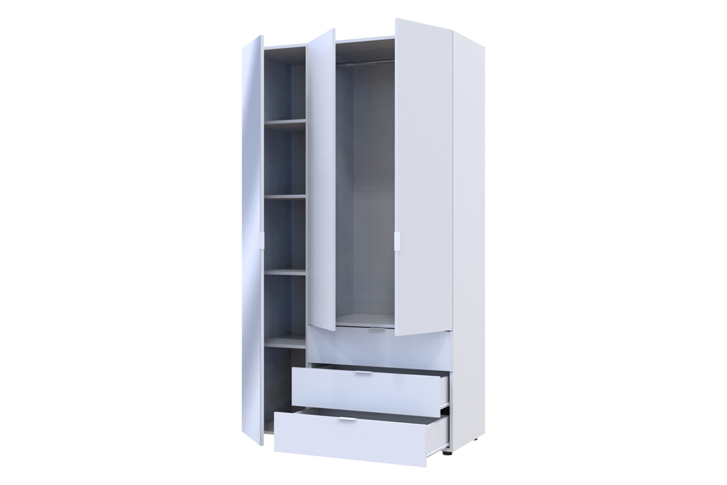 Висувні шафки: Три висувних шафки забезпечують додаткову зручність зберігання речей.