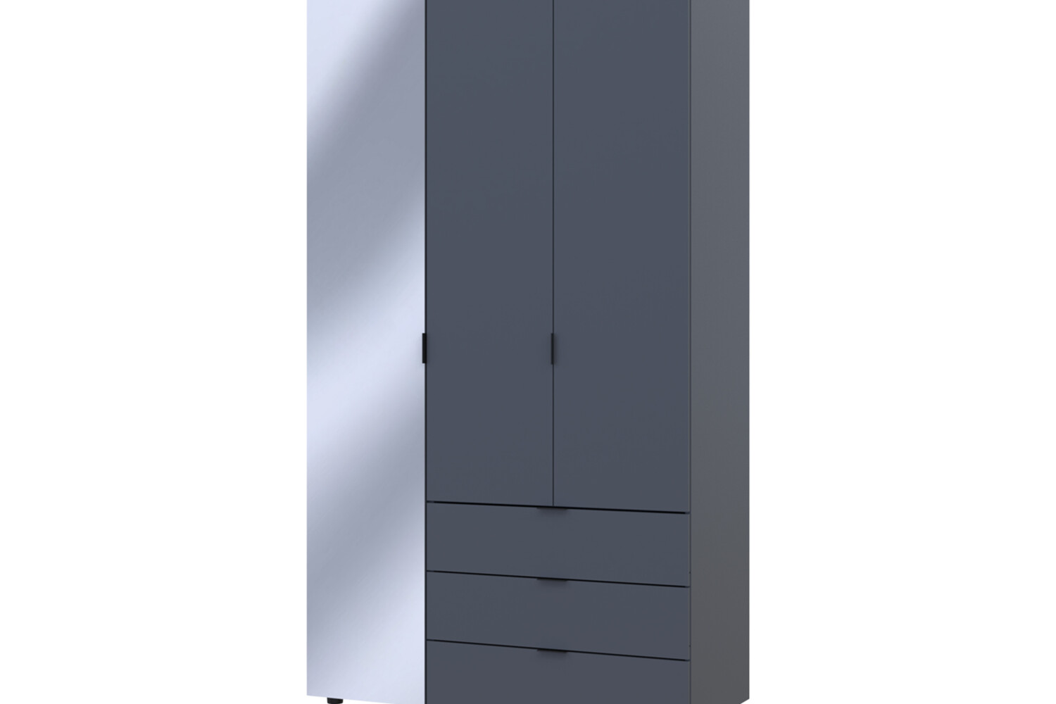 Шафа для одягу Гелар Графіт 2ДСП/Дзеркало - виготовлена з ламінованого ДСП завтовшки 16 мм, ця шафа забезпечує міцну і довговічну конструкцію, здатну витримувати повсякденне використання.