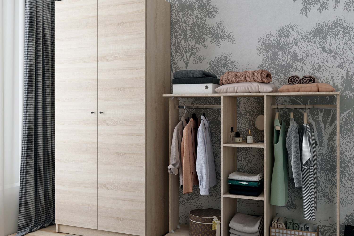 Шафа для одягу Promo з полицями Дуб Сонома 2 ДСП ця шафа забезпечує не тільки зручне зберігання одягу, а й надає інтер'єру вашої дитячої елегантного вигляду.